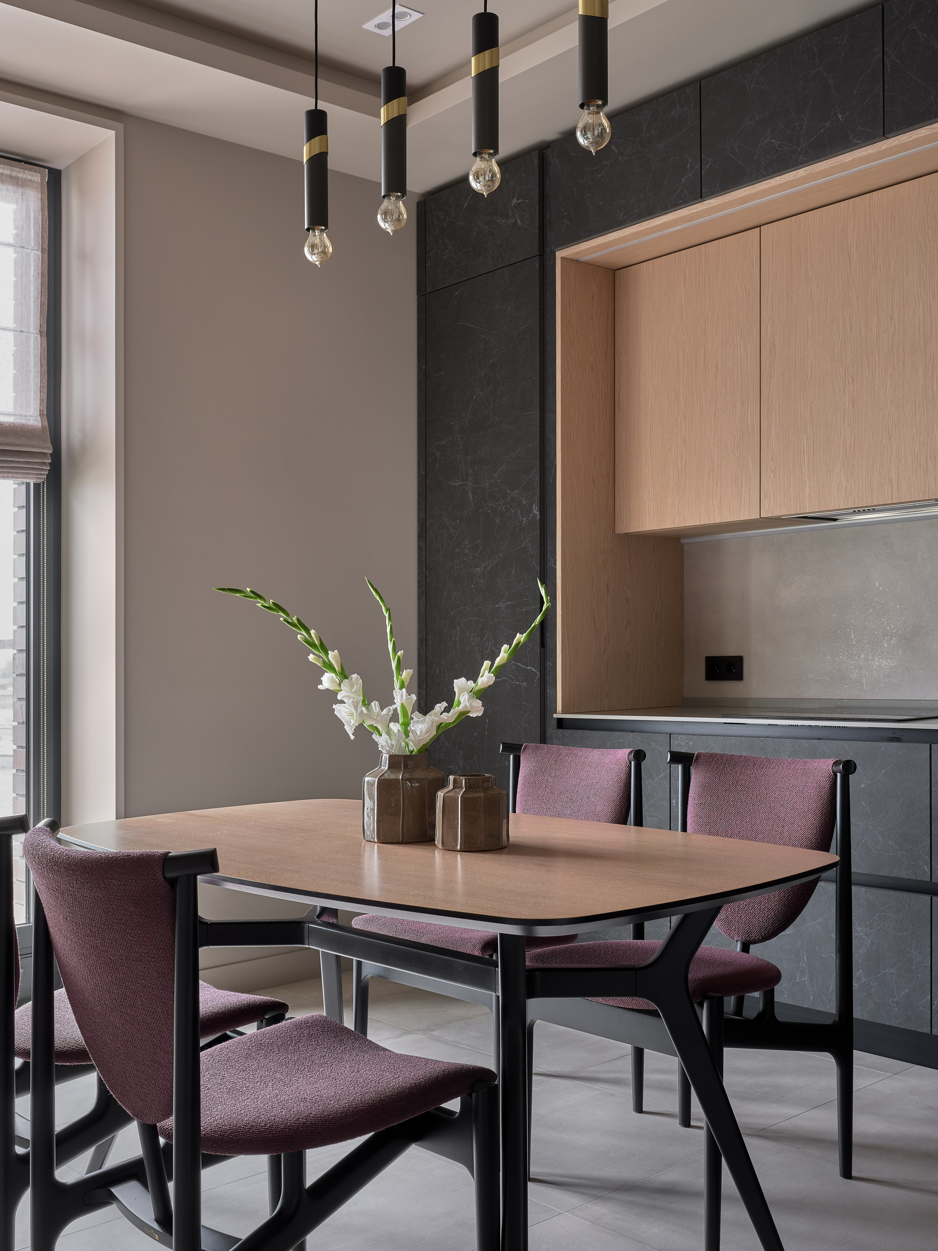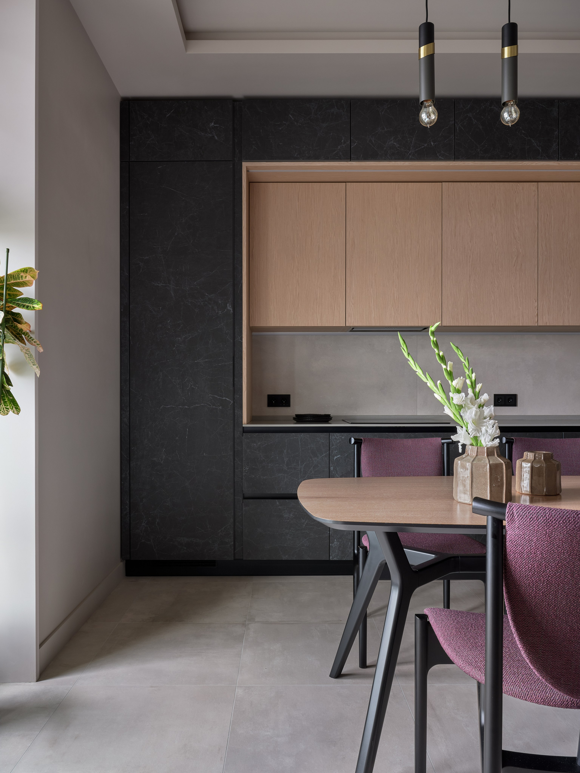 Светлое дерево и фиолетовые акценты